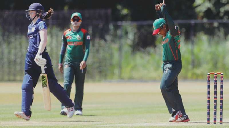বৃহস্পতিবার ন্যাদারল্যান্ডসের অ্যামস্টেলভিনে অনুষ্ঠিত খেলায় টসে জিতে বাংলাদেশকে আগে ব্যাটিংয়ে পাঠায় স্কটল্যান্ড। আগে ব্যাট করে উদ্বোধনীতে ৫১ রান যোগ করেন দুই ওপেনার শামিমা সুলতানা ও আয়শা রহমান।