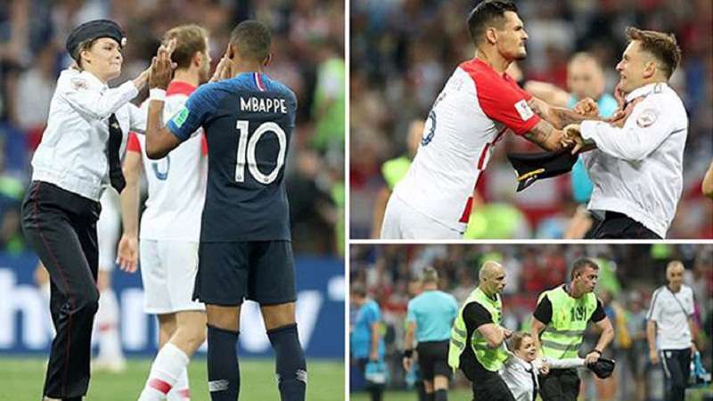 রাশিয়া বিশ্বকাপের ফ্রান্স-ক্রোয়েশিয়ার মধ্যকার ফাইনালের উত্তেজনাকর মুহূর্তে হঠাৎ মাঠে ঢুকে পড়েন এক সমর্থক। প্রথমার্ধের বিরতির পর ফের খেলা শুরু হলে ফ্রান্সের এমবাপ্পে যখন গোলের জন্য মরিয়া হয়ে আক্রমণে যান, ঠিক তখন ক্রোয়েশিয়ার রক্ষণভাগের খেলোয়াড়রা দেজান লবরেন ডিবক্সের মধ্যে হাত দিয়ে এমবাপ্পেকে টেনে ধরেছিল। যে কারণে গোলের লক্ষ্যে ছুটা এমবাপ্পে মাঠে পড়ে যান।
