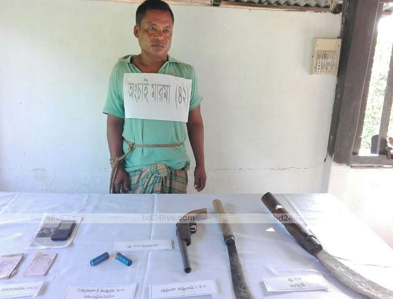 এ সময় তার বাড়িতে তল্লাশী চালিয়ে ১টি দেশীয় তৈরি এলজি, ২ রাউন্ড গুলি, ২টি দা, দুইটি চাঁদা আদায়ের রশিদ বই ও রাষ্ট্রবিরোধী বই-পুস্তক উদ্ধার করে নিরাপত্তা বাহিনী।