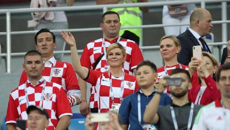 একুশে মিডিয়া:ক্রোয়েশিয়ার জার্সি গায়ে মাঠে উপস্থিত প্রেসিডেন্ট কোলিন্ডা গ্র্যাবার-কিটারোভিচ। ছবি: সংগৃহীত