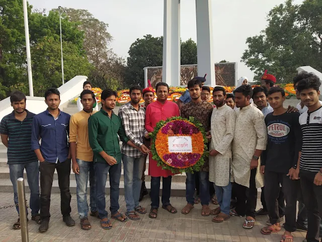 পুষ্পস্তবক অর্পণ শেষে ২৫শে মার্চের কালরাতে নির্মম হত্যাকা-ের শিকার সকল শহীদদের প্রতি বিন¤্র শ্রদ্ধা জানিয়ে এক মিনিট নীরবতা পালন করা হয়।