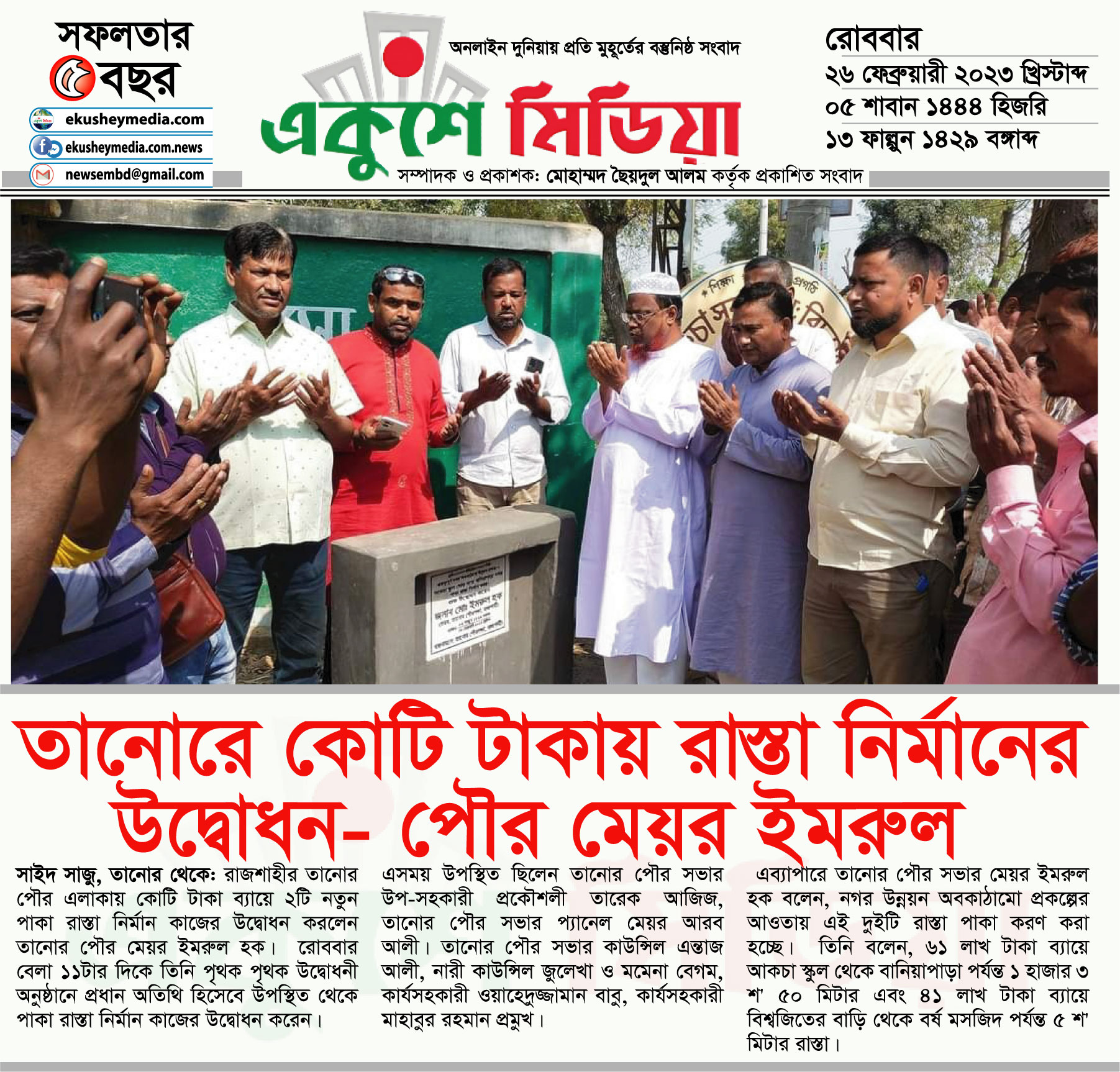 রাজশাহীর তানোর পৌর এলাকায় কোটি টাকা ব্যায়ে ২টি নতুন পাকা রাস্তা নির্মান কাজের উদ্বোধন করলেন তানোর পৌর মেয়র ইমরুল হক।